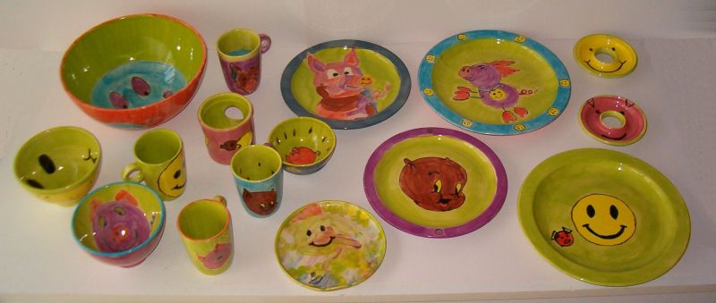 Servies - geschilderd door de Kinderen - Kleinkind - Manlief en Mij